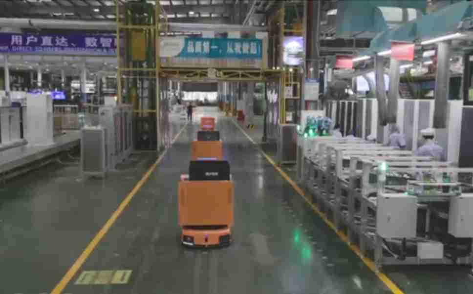 为车载冰箱物流配送打造的智能解决方案,,,包含产中物流通过潜伏举升AMR搬运至线边,,产后成品物流智能仓储,,流程包含产中物流智能齐套入库,,线边安灯叫料AMR智能配送至线边,,成品入库、、、出库,,通过无人堆高车机器人,,,智能仓储管理替代人工作业管理,,实现更高存储、、、、更高效率、、、更具柔性化的解决方案。。